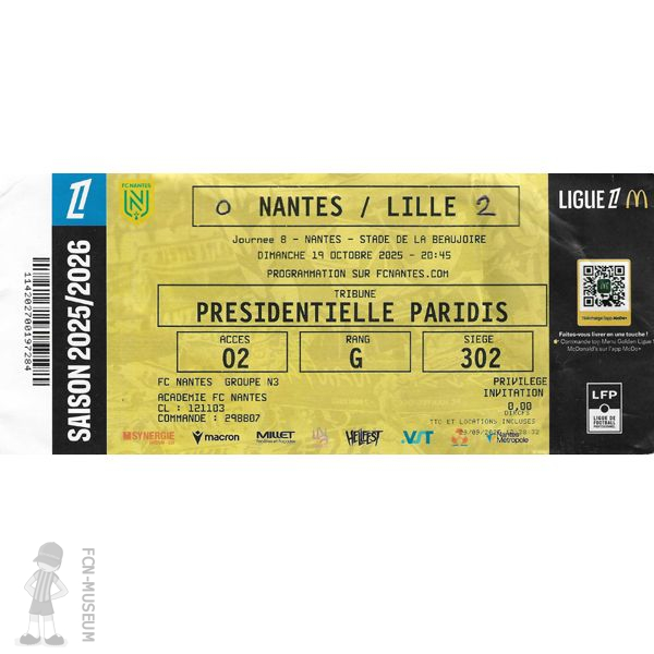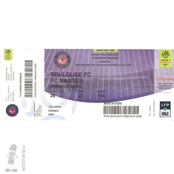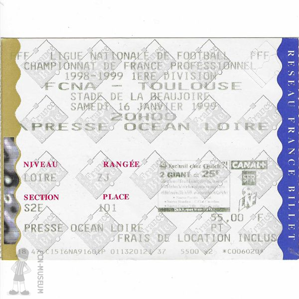 de plusieurs supporters nantais. Vous pourrez donc découvrir des Maillots du FC Nantes , des Billets , des Fanions de match , des billets de match de la journée de ligue 1